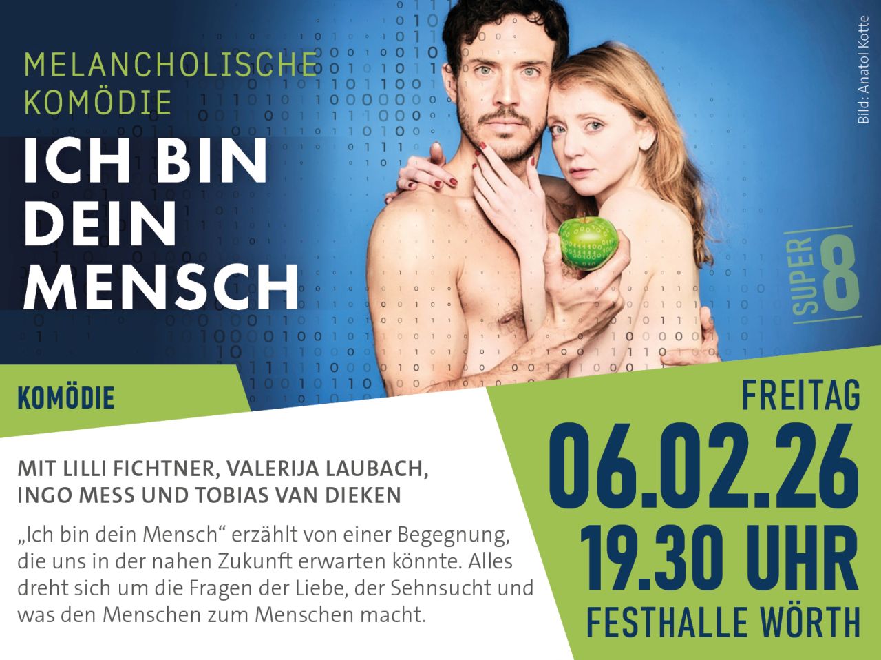Ich bin dein Mensch erzählt von einer Begegnung, die uns in der nahen Zukunft erwarten könnte. Es ist eine melancholische Komödie um die Fragen der Liebe, der Sehnsucht und was den Menschen zum Menschen macht - Eine wahrhaftige Liebesgeschichte.